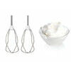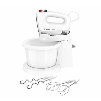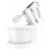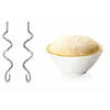 Piederumi iekļauti komplektā Statīvs ar rotējošu bļodu ar 3,0 l tilpumu; 2 putotāji un maisīšanas uzgaļi; 2 stabili mīcīšanas āķi