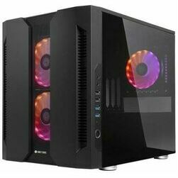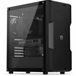 Mini Tower / mikro‑format korpuss ar rūdīta stikla sānu paneli, kas ļauj apskatīt datora iekšējās detaļas un uzsver mūsdienīgu izskatu.