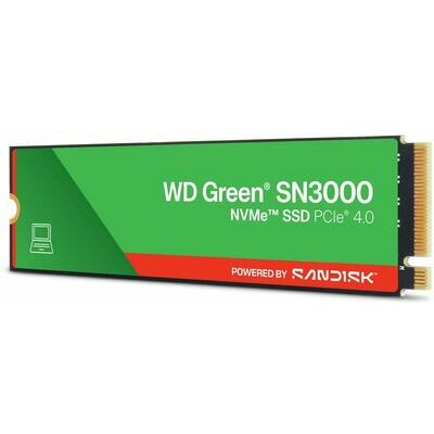 WD Green SN3000 1TB ir iekšējais NVMe SSD (cietvielu disks) no Western Digital (serie Green), kas paredzēts datora vai portatīvā datora krātuves paplašināšanai ar ātru datu piekļuvi un zemu enerģijas patēriņu. Tas ir M.2 2280 formfaktora disks ar PCIe Gen4 x4 un NVMe protokolu, kas nodrošina ātrāku lasīšanu un rakstīšanu nekā tradicionāli SATA SSD.