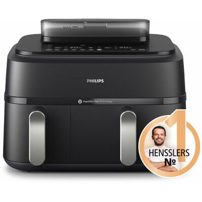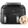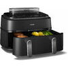 9L karstā gaisa katls ar 2 groziem un tvaika funkciju: 6L atvilktne galvenajam ēdienam, piemēram, kartupeļiem un 3L atvilktne uzkodām. Tas ir piemērots līdz 1100 g kartupeļu, 1600 g dārzeņu vai 12 vistas stilbiņiem. Lielajā grozā ietilpst arī vesela 1,2 kg vista